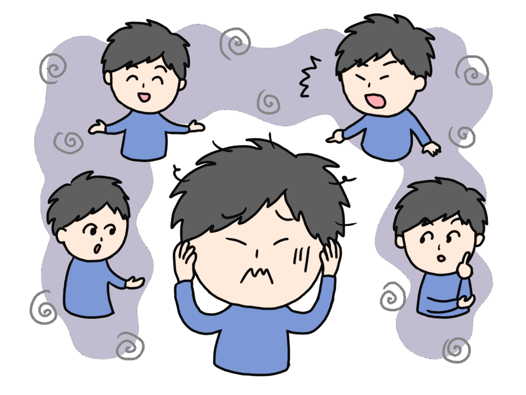 - 幻聴:存在しない声が聞こえ、特に自分に対する悪口などが多い。