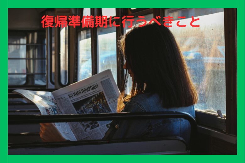 仕事を思い出すだけで不安や体調不良が起きる場合もあります。復職を意識した活動を通して、自分の反応を確かめながら少しずつ慣らしていきましょう。