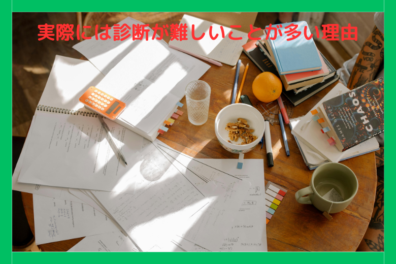 一方で、現実には診断に時間がかかることも少なくありません。特に、以下のような状況では診断が難航します。