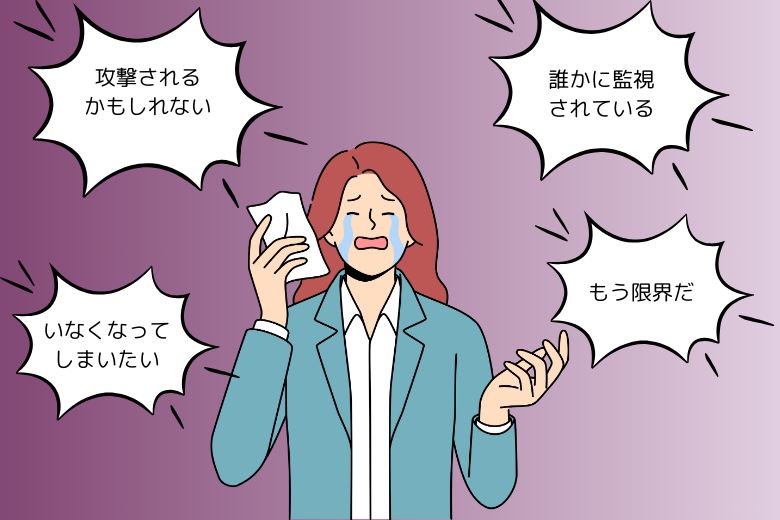 また、統合失調症で幻聴や妄想が強い場合、「誰かに監視されている」「攻撃されるかもしれない」といった考えに支配され、パニックや混乱を引き起こすこともあります。こうしたとき、本人は現実との区別がつきにくく、冷静な判断ができないことがあります。