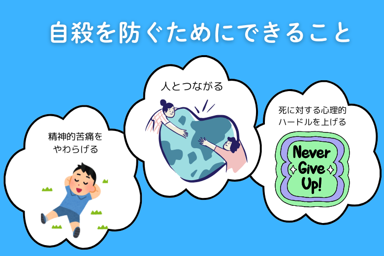 自殺を防ぐためには、先に述べた3つの要素が同時に揃わないようにすることが非常に重要です。