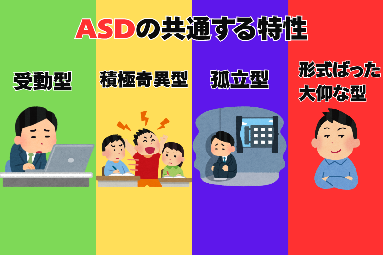 ASDには共通する特性がありますが、他者への態度や行動パターンに基づいて次の4つのタイプに分類されます。