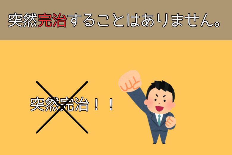 何年もこの状態が続く場合もあり、回復には個人差がありますので、焦らずゆっくり進みましょう。