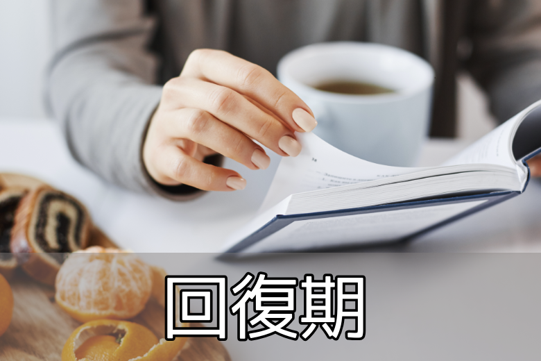 十分な睡眠と食事が回復を促し、不安や落ち込みが和らいだら、回復期に移行します。