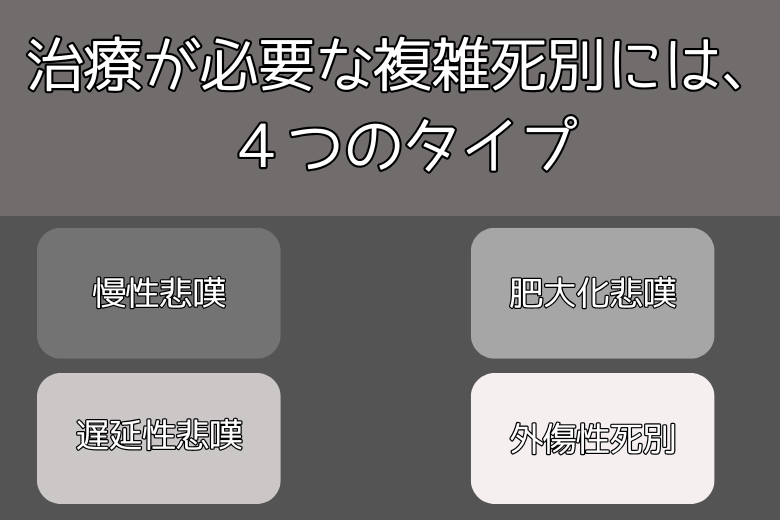 治療が必要な複雑死別には、以下の4つのタイプがあります。慢性悲嘆、肥大化悲嘆、遅延性悲嘆、外傷性死別です。それぞれの症状が長引く場合には、専門家の助けを求めることが重要です。
