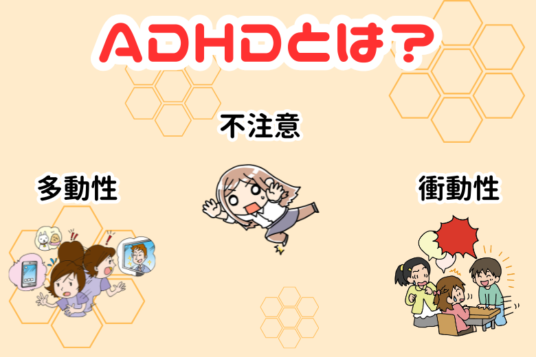 ADHD(Attention-Deficit / Hyperactivity Disorder、注意欠如・多動症)は、発達障害の一種であり、脳の機能に生まれつき偏りがあることによって生じる特性です。