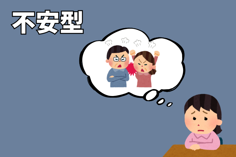 結果として、恋愛関係においては相手を束縛し、依存的になりやすく、拒否されると怒りを覚えます。このような人間関係は「不安型」と呼ばれます。