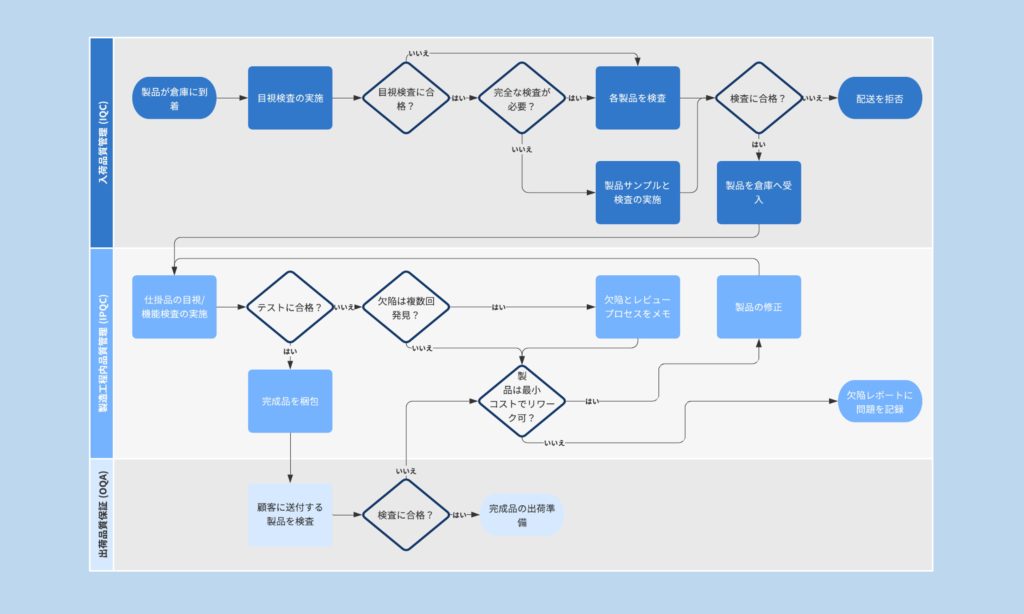 作業の手順を視覚的に示すフローチャートを作成することで、業務の流れが明確になります。イラストや写真を使うことでより分かりやすくなり、作業漏れや手順のミスを防ぐことができます。