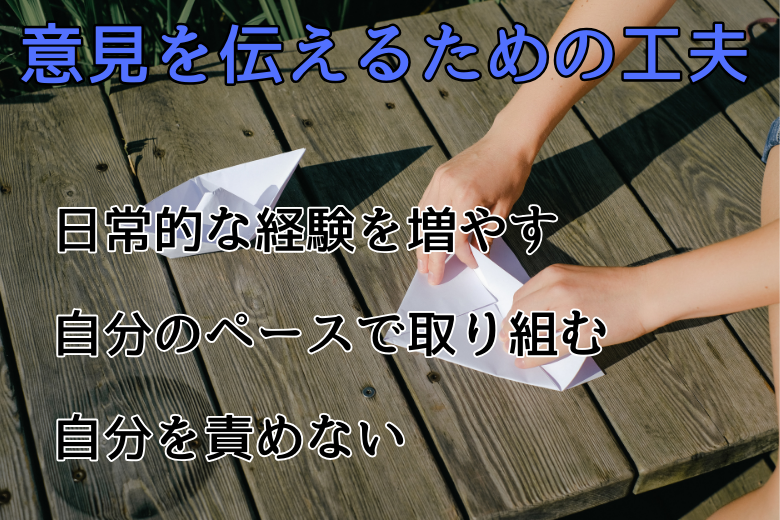 意見を伝えることが難しいと感じても、それは個人の性格や努力不足ではありません。むしろ、自分の特性や環境の影響を理解し、それに合った工夫を取り入れることが大切です。