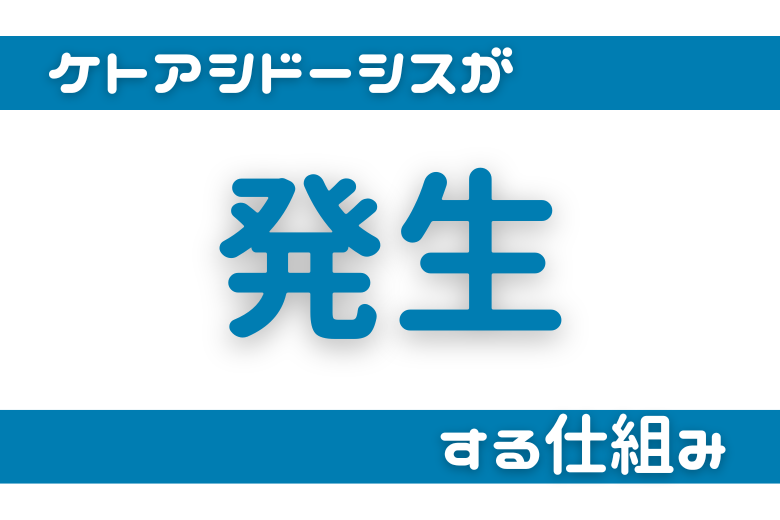 ケトン体は、肝臓が脂肪を分解する際に生成される酸性の物質です。通常は微量であれば体内に問題を引き起こしませんが、インスリンが不足して糖分からのエネルギー産生が阻害されると、体は脂肪をエネルギー源として利用するようになります。その結果、脂肪分解によって多量のケトン体が生成され、これが蓄積することでケトアシドーシスを引き起こします。
