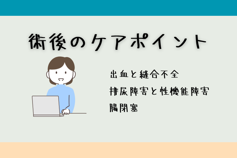 術後は排尿回数や残尿量、尿失禁の有無を確認し、障害の有無を評価します。