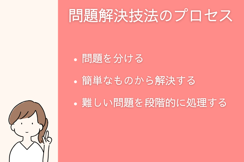 ①問題を分ける→②簡単なものから解決する→③難しい問題を段階的に処理する