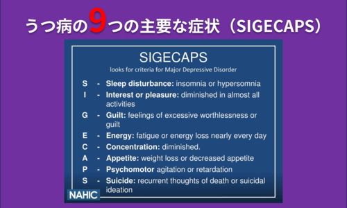 - 主要な9つの症状のうち、5つ以上が2週間以上続くと診断の可能性