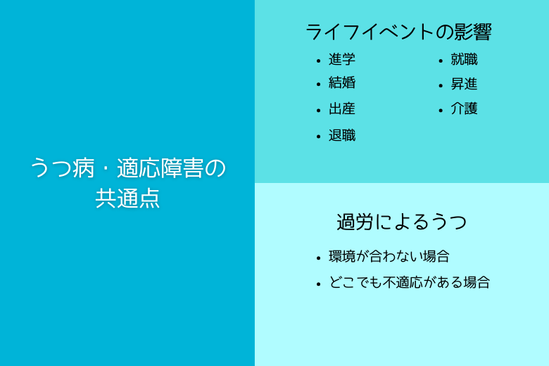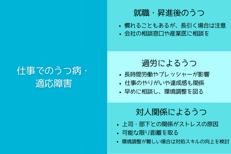 うつ病や適応障害は、ストレスが増えたときに発症しやすくなります。特に、大きな変化があった際には注意が必要です。