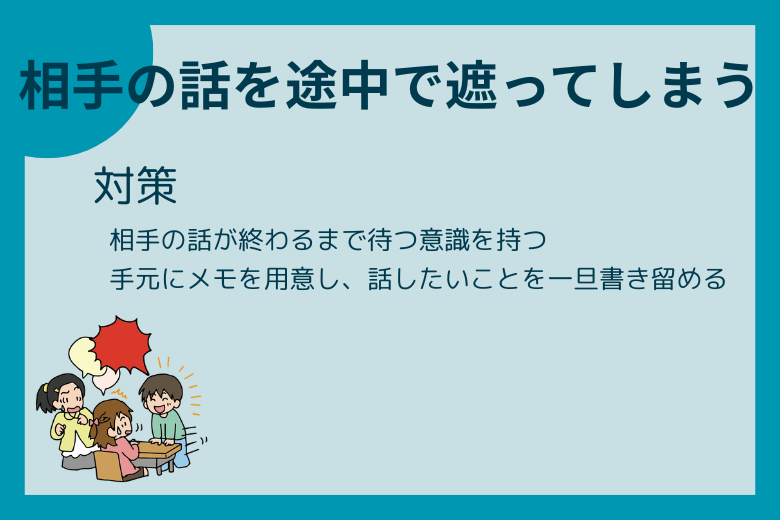 ADHDの方は、話を聞いている最中に、自分の言いたいことが思いつくとすぐに発言してしまうことがあります。日本の文化では話を遮る行為が「相手を軽視している」と解釈されることもあるため、注意が必要です。
