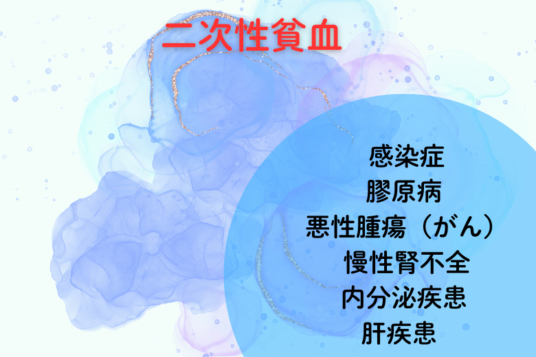 二次性貧血は、他の病気が原因で発生する貧血を指します。