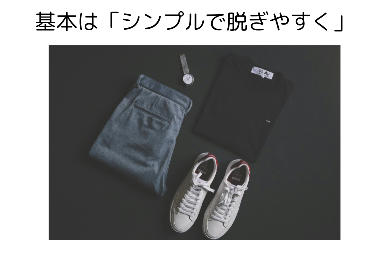 更衣室での着替えがスムーズに行えるよう、シンプルで動きやすい服装を選びましょう。