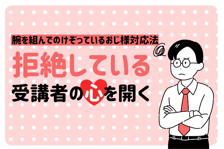 腕を組んでのけぞっているおじ様対応法|拒絶している受講者の心を開く