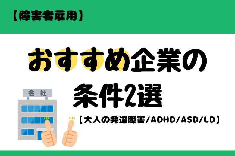 【障害者雇用】おすすめ企業の条件2選【大人の発達障害/ADHD/ASD/LD】