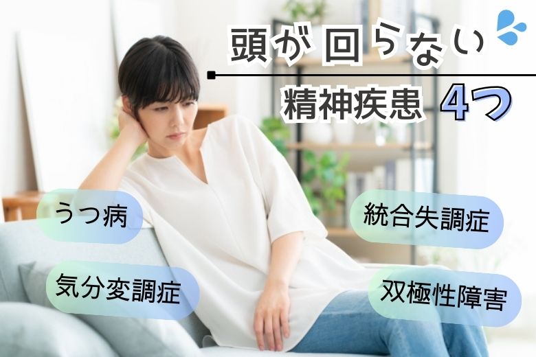 頭が回らない精神疾患4つ【うつ病、統合失調症、気分変調症、双極性障害】