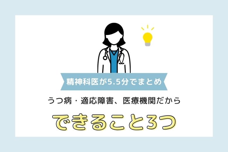 うつ病・適応障害、医療機関だからできること3つ【精神科医が5.5分でまとめ】