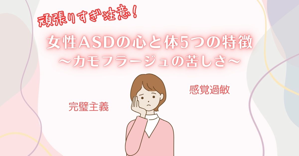【頑張りすぎ注意】女性ASDの心と体5つの特徴|カモフラージュの苦しさ|大人の発達障害